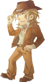 A curious and laid back guy, Calvin is always looking for new discoveries. Like Phoebe, he is a lover of the mine and spends nearly all of his days on the 5th floor of the Upper Garmon Mine writing notes. He comes to Harmonica Town only after ringing the town's Yellow Bell, and lives at Ocarina Inn. In the morning before going to the mine, he can be found outside of the Inn playing his guitar.[1]
