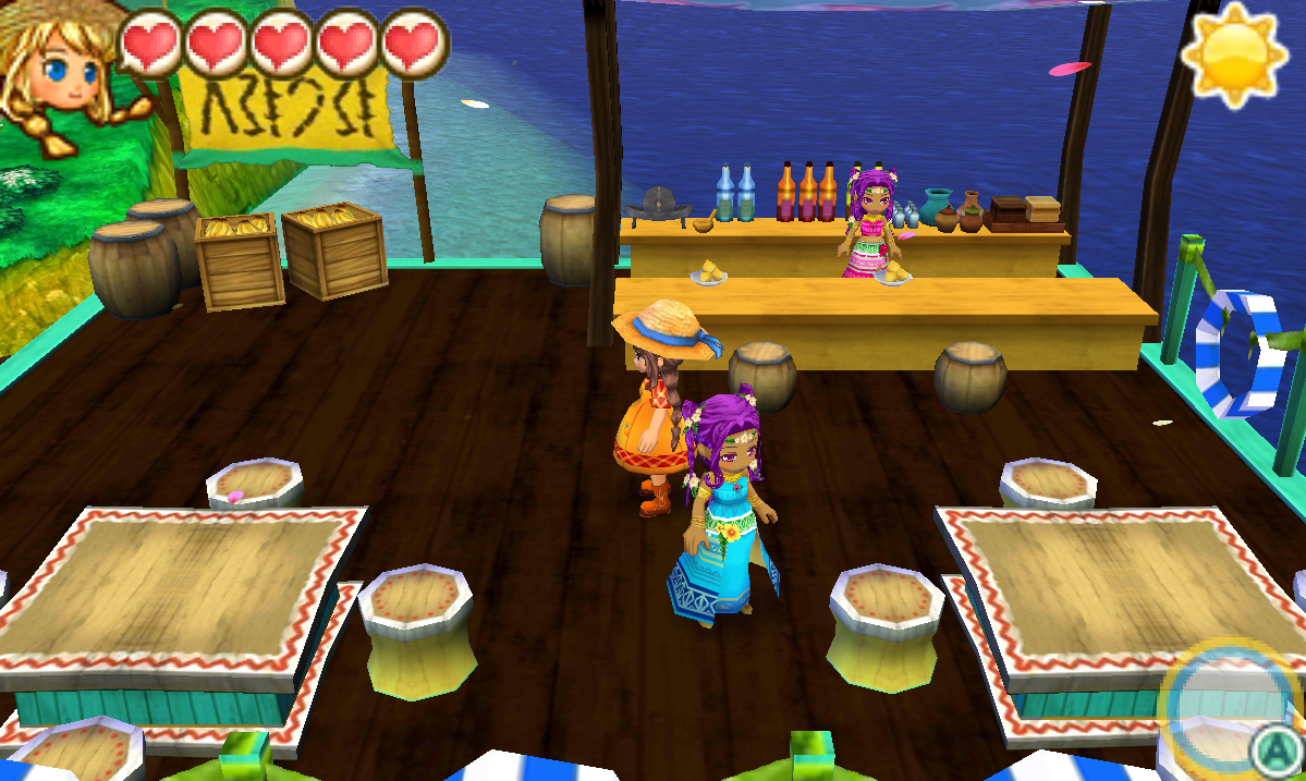 Carosello is the seaside cafe located in Lulukoko in Story of Seasons: Trio of Towns and is run by Iluka together with her twin sister Siluka .