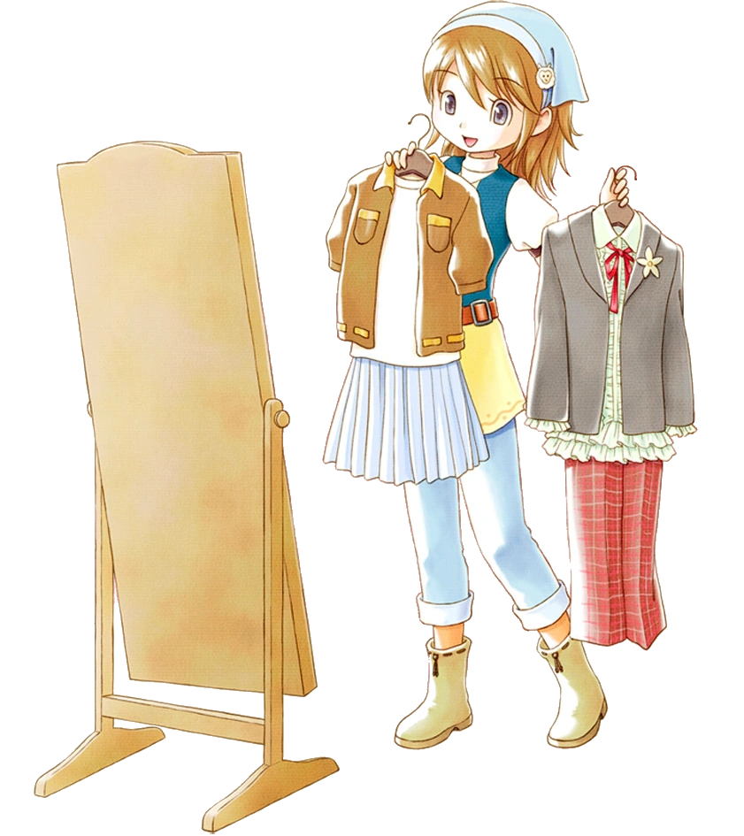 Clothes are a recurring item that the main character can can collect and put on. In some games each outfit has its own effects and in others they are simply aesthetic.