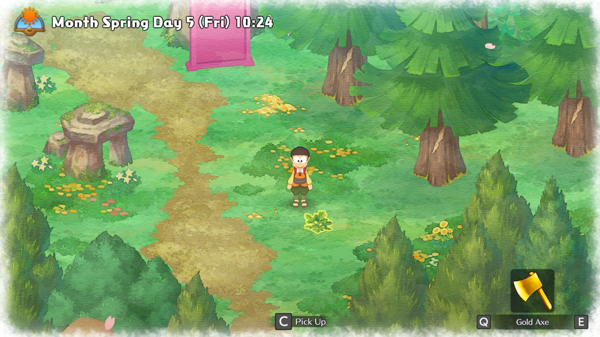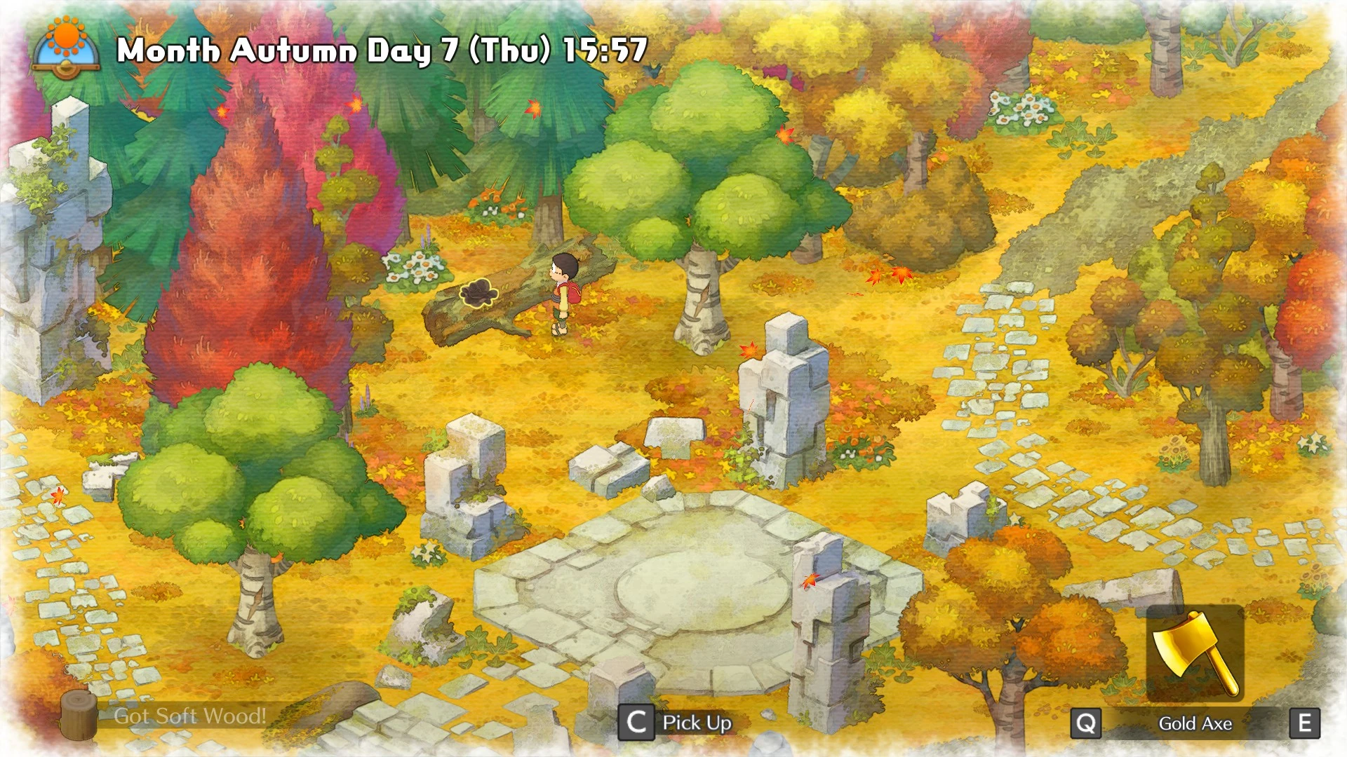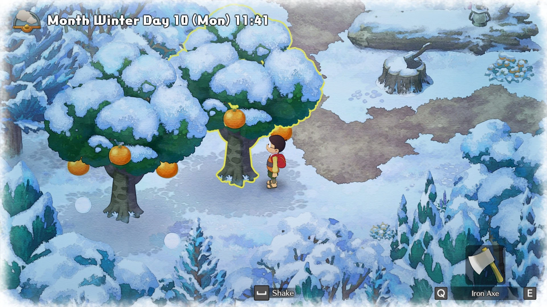 Foraging is a gameplay feature in Doraemon: Story of Seasons. Various ingredients and resources can be found throughout the seasons across Shizen Town. Mushrooms predominantly appear in Autumn, and each season there are at least two pair of trees with 3 seasonal fruit each.