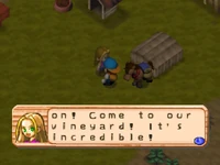 - By walking to the vineyard, the player will activate an event between Karen and Ann. Karen will be complaining about her problems with her father and the Vineyard, and goes on to say that Ann is lucky because she has no problems. Ann retorts that she has plenty of problems, Cliff for example. Karen responds, "The lazy guy with the falcon?" and Ann, embarrassed, yells "Not THAT one!" They walk inside together.