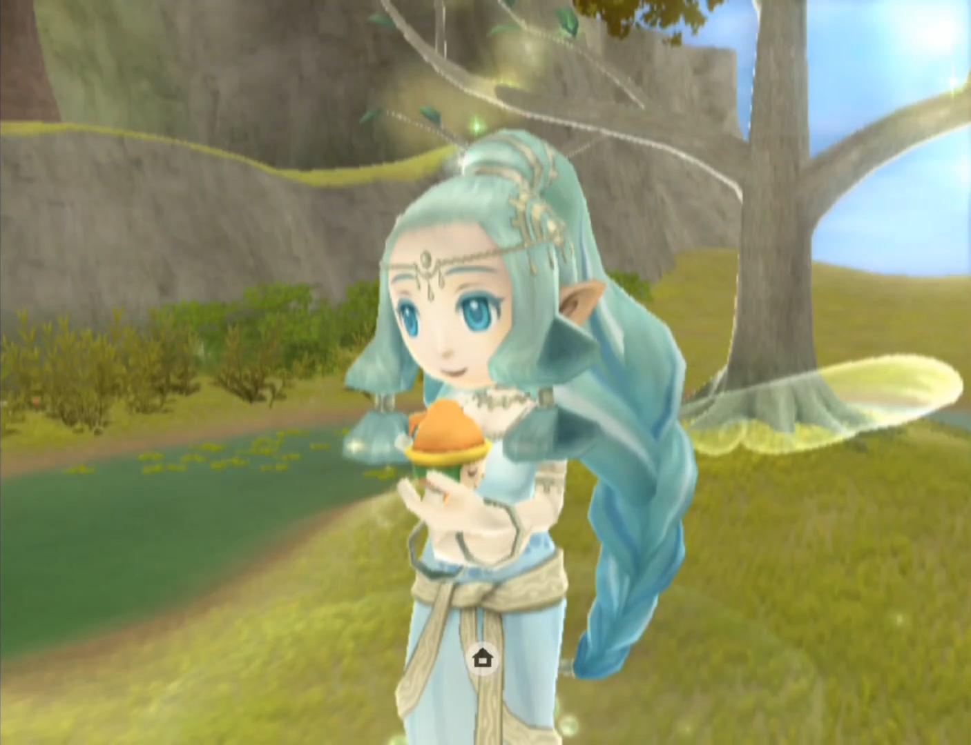 For the next 5 days, Finn will remind you to bring your child to the Goddess Pond so he/she and him can water the Goddess Tree Seedling. Stand next to the sprout and press the A button to allow the two of them to water it. The tree will grow just a little bit every 2 days.