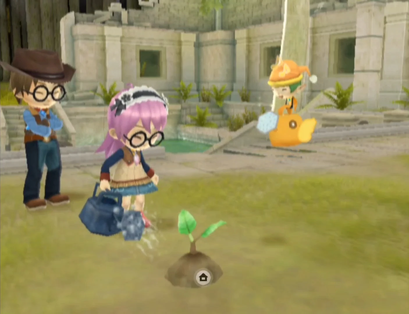 The Harvest Goddess will plant the seed in the soil around the divine tree. She instructs you to water it every day, for a total of 5 days, by bringing your child and Finn to the sapling. If you forget to water the tree for even one day, it will die.[1]