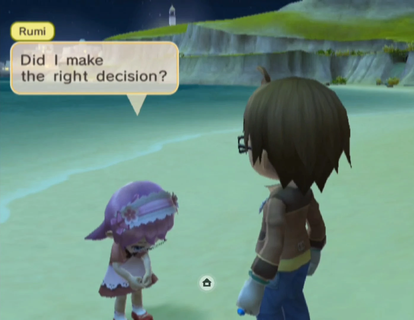 In your final morning, you will all gather at the Goddess Pond to see the chosen child off to the next island. A few of the villagers and Mayor Hamilton have also come to send them off and give their words of encouragement. Your spouse would ask the child to send a letter once they're settled in the new place. Hamilton then suggests taking a group photo to commemorate this day.
