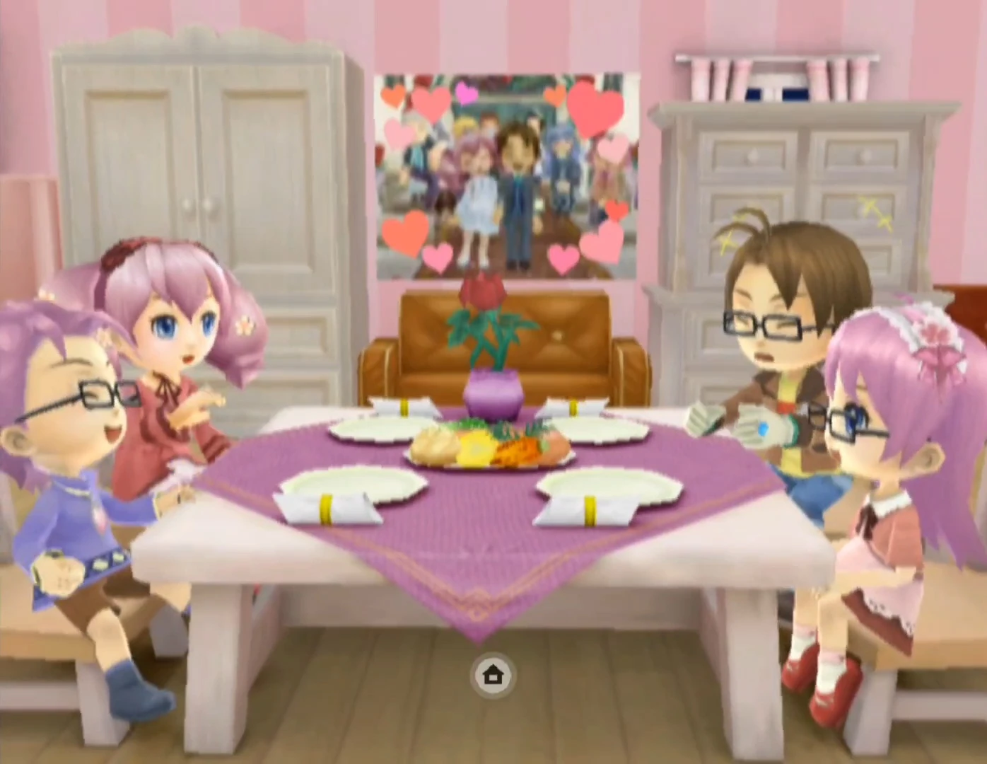 The game will immediately shift to your evening meal, where your entire family is spending their last night together before your chosen child leaves for Waffle Island.