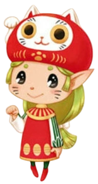 - Penny has a beckoning cat (招き猫, maneki-neko) on her head.