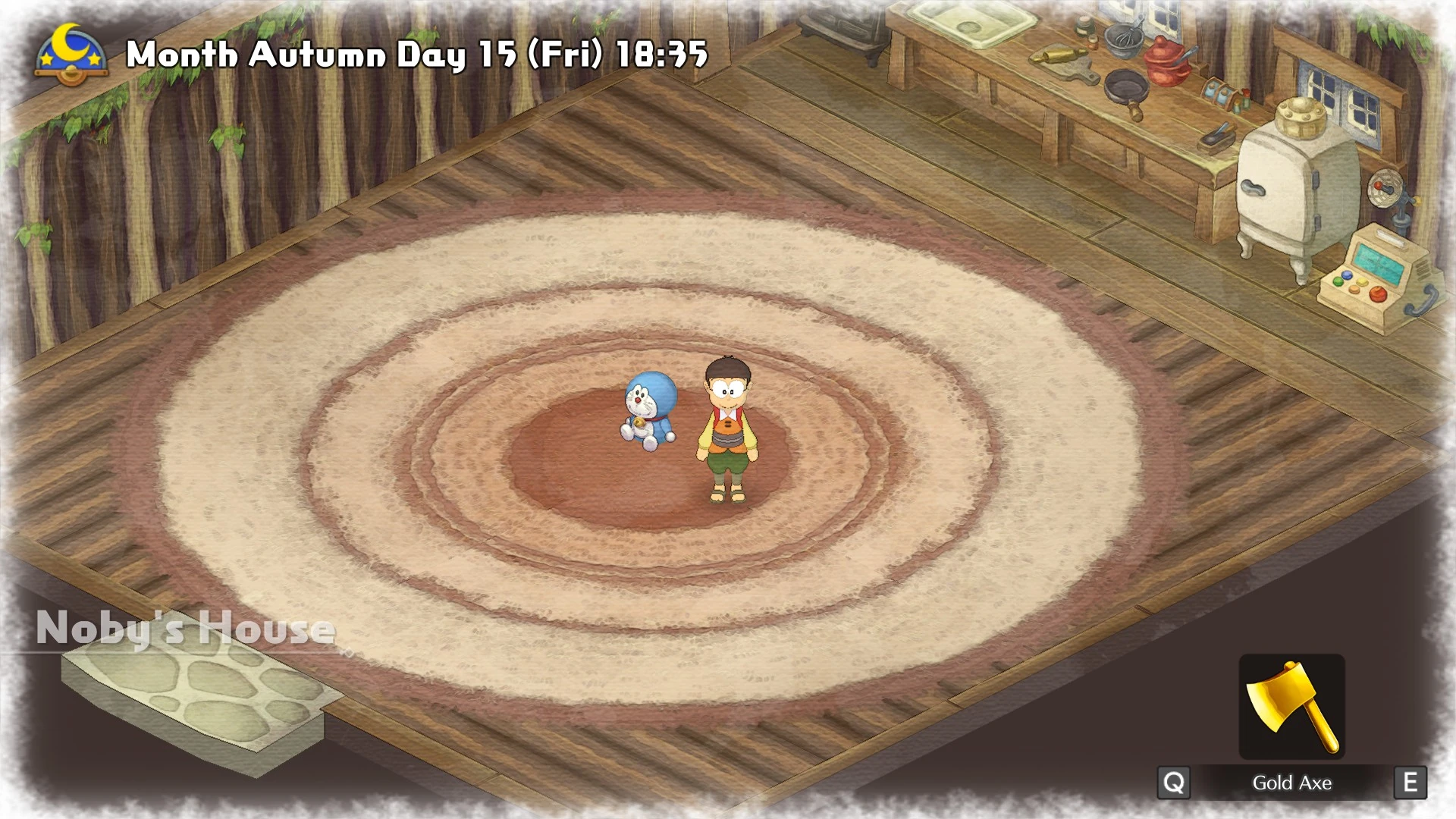 Pent is a character in Doraemon: Story of Seasons. Pent is a quiet person with incredible carpentry skills that lives in Lumberjack Forest with Big G. The player can request him to craft interior decorations of various styles for the house.