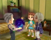 The Wizard is a quiet recluse who lives alone in his home located in Harmonica Town. He prefers to keep to himself, and never leaves his home. Most of his time is spent looking through his gigantic telescope, conducting research, or gazing through his crystal ball.[1] He has a hard time communicating with and understanding humans. The Wizard is a loner, and has a sensitive side once befriended.